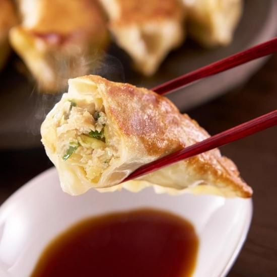 餃子の皮(小麦粉、食塩、動物性油脂、馬鈴薯澱粉)(国内製造)、野菜(キャベツ、にら)、豚肉、鶏むね肉、こいくち醤油(本醸造)、豚脂脂、上白糖、食用調合油(食用なたね油、食用ごま油)、にんにくみじん切り、でんぷん、しょうがみじん切り、食塩、ホワイトペッパー |