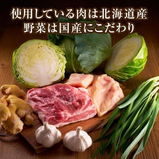 約28gとやや大きめの餃子は、北海道産の豚肉や鶏肉など、使用食材はすべて国産にこだわり、急速冷凍で生餃子に近い食感を再現いたしました。