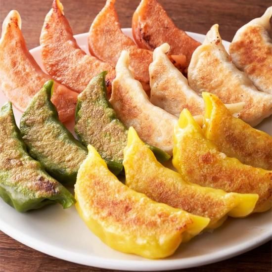 【コーン餃子】 餃子の皮(小麦粉、還元でん粉加水分解物、食塩、動物性油脂)(国内製造)、スイートコーン(スイートコーン、食塩)、豚肉、ホールカーネルコーン(とうもろこし)、キャベツ、豚背油、こいくちしょうゆ(本醸造)、食用調味油(食用ごま油、食用なたね油)、おろし生姜、食塩、ホワイトペッパー、にんにくみじん切り/酒精、乳酸Na、調味料(アミノ酸)、クエン酸、着色料(V.B2)、加工でん粉、(一部に小麦・ごま・大豆・豚肉を含む)